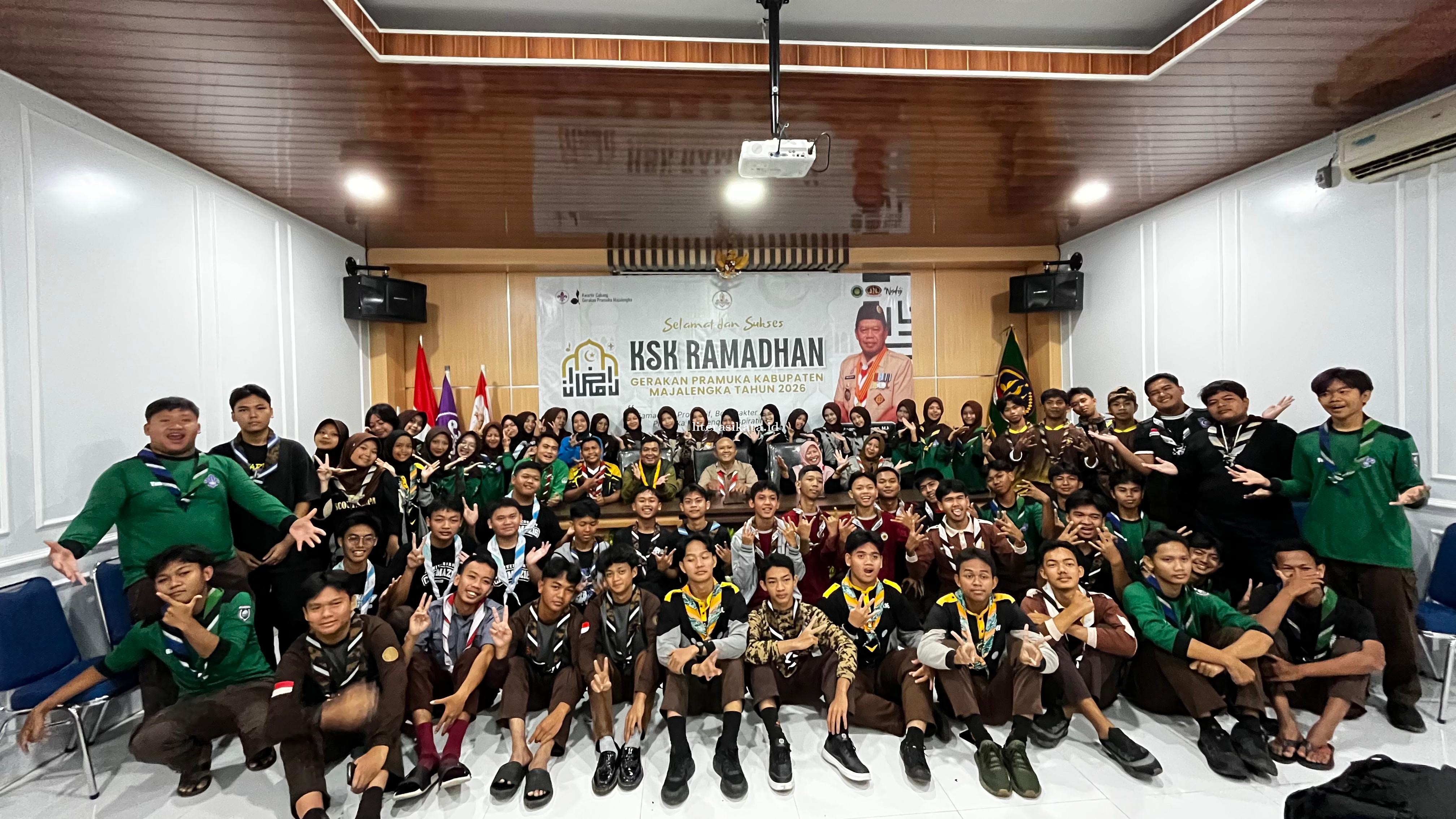 Literasikata.id Majalengka – Kegiatan *KSK Ramadhan 2026* yang diselenggarakan oleh Dewan Kerja Cabang (DKC) Gerakan Pramuka Majalengka Masa Bakti 2025–2030 berlangsung meriah dan penuh antusiasme. Kegiatan ini digelar secara *daring dan luring* dengan pusat kegiatan di *Kwartir Cabang Gerakan Pramuka Majalengka*, *Aula Kecamatan Majalengka*, serta *Gedung Yudha Karya Abdi Negara* di lingkungan *Pendopo Bupati Majalengka*.